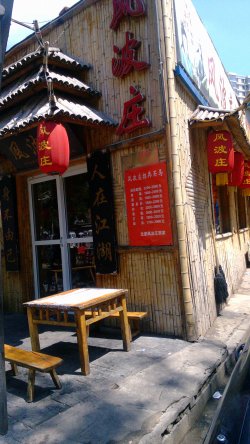 风波庄 在海淀区大钟寺27号(近四道口七天酒店)。风波庄是一家挺有特色的餐厅,他家是主题餐厅,整个餐厅弄的特别像古时候的客栈的感觉,服务员叫小二,菜式也多是什么九阳真经,大力丸之类的。进去之后小二会帮着点菜,也可以自己点。他家菜做的还可以,大力丸,就是糯米丸子,里面有肉,挺Q挺好吃的。服务不错,很有意思,可以来尝尝。查看更多