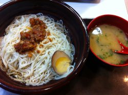 5个人去吃的饭,花了不到一百,味道很不错。辣肉拌面很入味,不是狠辣,卤蛋很好吃,不干,面很有嚼劲,看着红但是不咸。辣肉拉面的汤面也不错,汤很鲜,是高汤,海带很酥烂,没腥味。鸡肉饭的鸡肉超嫩,入口满嘴香,酱汁拌饭很开胃。但是猪肉饭就稍显油腻,肉有点肥,吃口还是不错的。味增汤味道就一般了,蛋花有点淡,海带没什么味道,总体味道还是不错的。查看更多