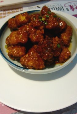 蓝港是个很适合春夏秋来的地方,因为除了吃饭外,在这里逛逛也很舒服,应同事推荐,一次和朋友的见面就约在了这里。蓝港里的餐厅都比较精致,干干净净的,很多餐厅都有户外座位,这家也一样。他家是台式风味的餐厅,店面不小,我们当时选在了玻璃屋里吃饭,用餐时能看到外面华灯初上的景象,很美。他家的大拌菜很不错,一大盆,蔬菜的品种很多,青叶菜、紫甘蓝、黄彩椒、红番茄、还有烤得焦黄的面包干,上面淋了一些特制的酱汁,色彩、种类、味道都是相当丰富。蔬菜很新鲜,吃起来非常爽口,而面包干焦脆的口感更是提升了菜品的丰富性。他家很多菜品是以台湾明星命名的,我们就点了一道奇隆醋鱼,不过这道以四爷命名的菜品却没让我们有惊艳感。上菜时我们被他的量惊到了,小小的比蘸料碗大不了多少的碟子装着,不知道还以为是桌子不够摆特意让倒到小盘里的菜品呢。鱼肉是先炸制然后烹制的,糖醋口,微微一点辣椒酱体味,但对我来说,这道菜有些欠缺,炸制的痕迹太重,虽然酥,却像有层硬壳,让鱼肉和鱼皮部分的味道和口感分离了,而且酱汁的味道略有些复杂,主味不突出,下饭倒是可以,但不是太喜欢。三杯鸡,台湾的特色菜,他家菜量小再一次体现出来,刚上桌的三杯鸡勉勉强强盖住了石锅底部。鸡肉的颜色和味道都略微偏重了一些,不过总体味道还是很好的,鸡肉不够嫩,但很入味,也是个下饭菜。朋友带了宝宝,多盐的食物显然不是太适合宝宝,给她点了一粉凤梨酥,甜甜糯糯的她很喜欢,吃得很开心。查看更多