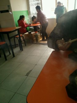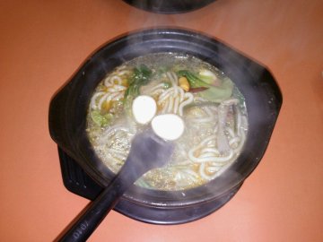 本来是冲着肉饼去的,结果要肉饼的人多还得等着,临时决定吃砂锅土豆粉了。话说这砂锅土豆粉,价格挺亲民,十元一份,就能把肚子填得饱饱的了。里面放有豆腐、蘑菇、金针菇、油菜、豆腐丝、海带丝、鹌鹑蛋,营养搭配得太均衡了。店面不大,可以同时容纳十六个人就餐,卫生干净,服务员态度也还不错,下次还去,不过下次是冲肉饼去的哦,因为吃肉饼免费喝粥