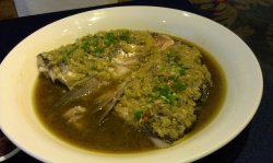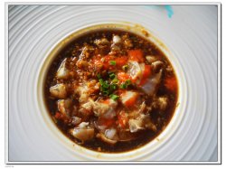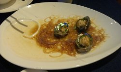 国庆最后一天虽然下着大雨,但还是出去吃饭了。总共才3桌客人,本来想坐包厢来着,可是说要收取手续费的,后来想想还是算了。霸王花炖排骨,我只有吃霸王花,肉不想动。汤汁很好喝,刚开始以为是笋呢,原来叫霸王花,第一次吃来着甲鱼我以为会一只端上来,但是明显没有一只的料,不过做的口感相当不错,很入味,配着洋葱青椒一起炒的鲍鱼一份8只,还可以,粉丝没味道牛仔骨也是非常入口千岛湖鱼头没有想象的辣,鱼肉鲜美很嫩。就是蒸一下大概要40分钟,所以最后上元宝虾一抢而光了总体都很不错,就是冷菜分量较少,都很迷你。面疙瘩不怎么好吃不是手工的,煎饺很不错6个冷菜8个热菜2个点心。8个大人1个小孩吃的还可以,后来又加了一个素菜。大厅里有特价菜还是可以的。西瓜汁好喝,酸梅汁貌似不咋样查看更多