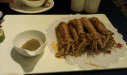 很早以前去吃过一次,有点小远啊,找了好久才找到,是做温州海鲜的一家店,里面装修还是富丽堂皇,金光闪闪很大气的,服务员素质也挺高的,很热情,现在好像有特价菜了,也不是很贵,附近的人去聚餐还是不错的查看更多