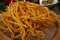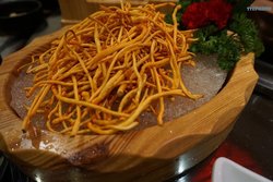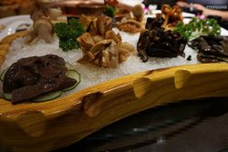 老城旅游区里面的,去找的时候还挺费劲的,因为门口没法停车,只能停在马路牙子上。绕着城厢中路就是找,结果就在黔城旁边,orz……坐公交的话,到城厢东路或者城厢中路,都可以。下车了找黔城就行,就在那个角儿上。坐地铁到鼓楼站,如果没记错,应该是D口最近。从外面看,店面的整体装修非常中式,木质的结构很明显,确实有云南那边的味道。进去一看更了不得,都是各种各样的泡酒,还有什么壁虎蝎子,很恐怖。佤家鲜辣番茄三味锅,58米,4颗星各种各样的蘑菇,都是没见过的菌类,锅子端上来就好香,满屋子都能闻见。而且有服务员专门给伺候着,要先喝汤,才能吃东西。后来发现,原来那个汤真的好喝啊!特色小料,9米,5颗星小料的种类太全了,不要这么完美啊!香草羔羊肉,48米,4颗星是真的羊肉,好嫩好滑,而且吃到嘴里,可能是有菌汤的关系,都不会膻气,反而特别香。七彩云南组合,68米,5颗星好多没见过的菌类,其中一种黑乎乎的,看起来很难看的,叫牛肝菌。到今天我都记得,那味道,简直是棒极了!尤其是煮出来之后,太香了!秘制豹皮豆腐,22米,4颗星好吃的豆腐,虽然样子很奇怪,但是放在菌汤里面一煮,味道没挑了。尤其是口感,跟肉一样,肉头儿好吃,要了两分。鲜花饼,6米,5颗星比外面买的要好吃,不甜,但是有献花的香味儿。总结一下的话,吃的方面没的说,太有特色了。云南的杂菌宴无限发挥了,尤其是菌汤。另外,比较喜欢的他们家的特制小料,有兴趣可以尝尝。…查看更多