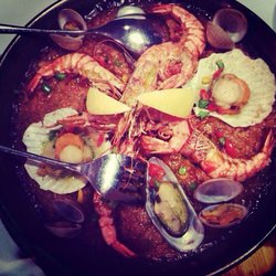 是一家很地道的西班牙餐厅,环境很好,很大气,靠窗的位置很不错~服务员的态度很好。餐前面包量好大,搭配橄榄油汁很不错。鲟鱼子色拉很爽口,鲟鱼子有点咸~青花鱼虽然量很小,但是很新鲜,鱼肉很鲜美~另外,他们家的海鲜炒饭真的很赞,虾个头都很大,超鲜美,贝壳个个都很大,很好吃的说~
