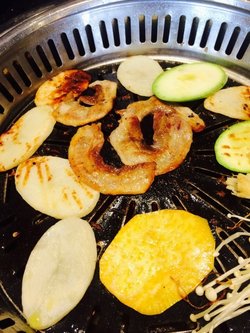 这家店就在小营东路,店面挺大的,有烤肉有火锅,环境还是挺不错的,我们选的烤肉。他家的炭火一般,烤肉不是很给力,牛肉很香,挺嫩的,这个还算好熟。腰子跟鱿鱼就特别费劲,因为鱿鱼一烤有点弯曲,就更不容易受热了。素菜爱吃烤红薯,挺甜的,切的也薄,这个倒是比较好熟。他家的烤串也不错,铁签的,肉很嫩。2人消费130元。查看更多
