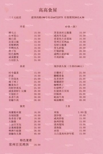 高高食屋的店面面积非常小,他家的价格蛮实惠的,老板人非常和气,对我们这些常光顾的老顾客特别的热心,有时候空的时候还会喝我们侃侃家常,感觉就像哥哥姐姐一样亲切。他家是以家常菜为主的,味道比较具有上海菜风味。店内的环境一直收拾的很干净,没有因为店面小而忽略了这一点,非常不错。他家的刀豆炒土豆和虾仁跑蛋我都蛮喜欢吃的,前者食材很新鲜,量比较足,土豆炒的比较酥,刀豆保留了原有的鲜味,咸淡适宜,味道蛮好的。虾仁跑蛋里面的虾仁比较多,而且鲜嫩又有弹性,满满一大盘虾仁跑蛋吃起来比较过瘾,蛋又嫩又香,非常嗲!