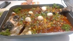 北行长江街头上的一家鱼酷,在碧塘公园的这一面,交通非常的便利,公交车多的不得了,162.184.190等等等等,只要到北行的就都能搭上沈阳的鱼酷也算去了几家了,个人感觉这家环境是最差的,实在是太狭窄了,吃饭的时候一点都不舒服,可能也跟这家是最老的一家店有关系吧,毕竟大悦城店和华府店都是新开的,环境肯定要比他们家强不少的。一般都是两到三个人去他们家吃烤鱼,第一个步骤肯定是选鱼啦,个人是比较推荐清江鱼的,因为肉质比较嫩,更重要的是一根刺,不会卡嗓子。一条鱼的重量一般都在2.5斤左右 ,两个人吃正好,如果是三个人的话,最好能选到2.7斤以上的,要不真不够吃啊,清江鱼的价格一斤在53元左右,一条鱼不到150元他们家烤鱼的种类比较多,个人是比较喜欢吃荔枝香辣的,这款是属于甜辣口味的,不算特别的辣,但是还带着一点荔枝的香甜,女孩子一般都爱吃这款,如果是不喜欢吃辣的朋友,建议可以点那款十八香的,基本没有辣味,但是也很好吃。配菜的话可以单点也有拼盘,我个人是比较喜欢拼盘的,名字很好听,叫什么花枝招展的,而且种类也比较多,我选的那款配菜里就包括了鱼豆腐,魔芋,干豆腐,木耳,小白菜还有金针菇,一份是18块钱左右,看起来量不是很大,但是下到锅里也不算少了。除了配菜之外,凉菜也可以叫上一份,像是我个人比较喜欢那款叫绿野仙踪的小菜,其实就是酸黄瓜和海草的搭配,特别的爽口,如果喜欢吃甜的,也可以选他们家那款黄桃和仙草的小菜,也是挺不错的。主食除了米饭之外,比较推荐泡饼和年糕,这两款的味道都是挺不错的,特别是泡饼,非常的好吃。他们家的饮品种类也比较多,有的是现调的,也有易拉罐,不过价格都挺贵 ,现调的一扎要2.30元,超市2块钱一个易拉罐也要卖到6块钱,小贵啊。…查看更多