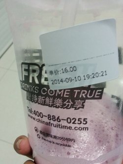 鲜果时间的各种饮料都是大爱啊,每次来爱琴海购物中心都会点的,他家就在6层,虽然附近还有不少卖饮料的小店不过还是会选择鲜果时间的!这次点的是西柚番石榴百香果,8元一杯,这个点的是中杯的常温,毕竟天气开始凉了嘛,服务员是一个小伙子干事很麻利,很快就把饮料做好了,吸管可以自己选择这种选择细的就可以了。喝上一口第一感觉是有点酸之后又感觉有点甜,最绝的就是能喝到籽,不知道是番石榴籽还是百香果啊,反正一咬咯吱咯吱的相当的好玩,大家有机会尝尝啊!查看更多