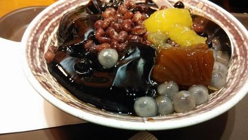 不晓得啥时候,台湾人的甜品也让南京人的下午茶丰富了起来~各类鲜芋仙也是遍地开花。这次选了一个仙草六号,因为个人非常喜欢龟苓膏仙草之类的清凉败火的东西,据说两种东西外观差不多,其实一种是植物一种是动物。六号里面是粉粿和冰豆,口感都蛮清爽的。