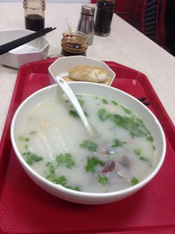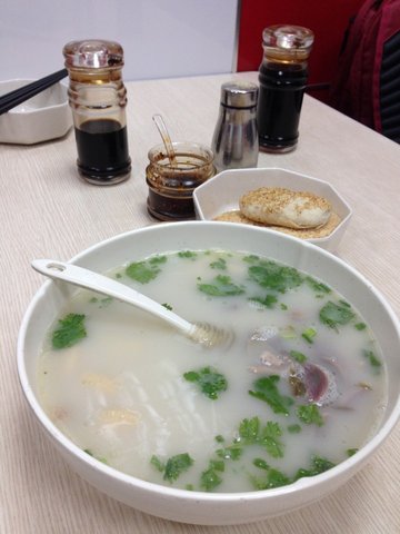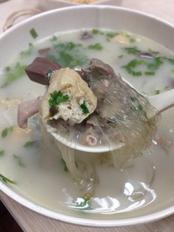 总评:去了南京必然要吃的是鸭血粉丝汤,或许你想着会没兴趣。入乡随俗,请你一定要来尝尝,或许这一试就上瘾了呢。南京大街小巷都是卖鸭血粉丝汤的,鸭得堡算是比较成规模的老字号了。品质不错,本地人都会去的店,想必是老味道。值得推荐,值得一试。评分:85分性价比:❤❤❤其实小亚去吃鸭血粉丝汤也是为了尝尝,看看这风靡南京的名小吃长什么样,什么味道。根本就没多大兴趣,因为我对血一类的东西毫无兴趣,鸭血在里面完全可以忽略其他了。不是说好不喜欢吃,只是觉得这个东西感觉不太阳光,所以有点心理抵触情绪。但是实话说,尝过之后觉得还不错,虽然不会喜欢上它,但是觉得喜欢这个东西的人肯定会爱上它的。【全套老鸭粉丝汤】16元很大一碗,基本上汤占大部分,不过这个汤还是很有存在的必要的,是亮点啊。汤头虽然看着呈奶白色,然后也不会很浓稠,基本上没什么香味。但是喝过之后肯定会很喜欢,因为鲜啊,这种鲜跟鸡精勾兑出来的不一样,是鸭肉鸭骨熬出来的淳鲜有关系。喝了也不会觉得口干。说说里面的配料吧,鸭肫,鸭肠,鸭肝,鸭血,豆腐果,粉丝。我尝试了一小块的鸭血,真的是嫩中带点儿韧劲儿,比果冻要好吃。粉丝也是大亮点哦。【鸭油烧饼】2元其实就跟一般的千层酥烧饼差不多,只是说它用的油是鸭油吧。个人觉得不太好吃。没什么值得必须尝的。【锅巴】2元一片2元。小亚觉得还不错,跟平日里买的那个五香味道的大米锅巴差不多的味道。很脆很脆。可以掰小块放在粉丝汤里面,泡一泡口感就又不一样了,换一种吃法试试或许也可以。恩。 很多人因为去了南京,爱上了那一碗鸭血粉丝汤。我觉得完全有可能。因为这个确实不错。不吃必然后悔。…查看更多