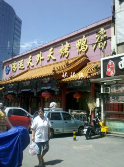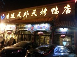 餐厅: 鸿运天外天烤鸭店 地址: 海淀区阜成路65号点评:这家烤鸭店是连锁的,北京很多家,阜成路这边的人气较旺,饭店大小中档吧,门脸是那种古代老式的装修,有点老北京的感觉,里面空间也可以,菜的味道中规中矩,一般家里吃饭选这地还成。烤鸭可以点半只,肉比较瘦,没有肥的,外皮很酥脆,鸭子肉也比较紧致,两种蘸料,咸、甜任选,中规中矩吧。夫妻肺片,感觉不如四川菜馆做得正宗,还不够麻辣,红油也不够多,菜量还算较大,毛肚有点多,味道咸香口味。烤羊腿不错,个头蛮大,而且烤得特别的焦脆,外焦里嫩,上面撒了椒盐和籽然,很香很够味,吃着过瘾。这里吃饭价格合理,适合家族小聚。人均消费55元查看更多
