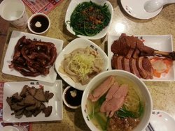 工作日中午出来蹭饭,虽然遥远,但为了见兔子一面不容易啊~当然其实是为了送货去的,那货积在我这里太久了,再这样下去就要过期啦过期啦~兔子让我早点去,因为过了12点,大家都出来吃饭了,人就很多,果不其然,我们去的时候全是位子,后来都开始排队了!@卤肉饭/9块,上面的浇头卤肉不是很多,但好在里面的汁水够多,所以吃到最后还不会吃白饭,当然卤肉么肯定是有肥肉的,我就尽量吃吃精肉吧。。。卤肉的味道还是不错的,配着白饭刚好有中和,不油不腻,如果自己一个人来吃,一碗饭再加上个菜就差不多了,我们么是点了多了些。。。@冻顶茶鹅/32块,这个名字还蛮有意思的,因为他是用茶叶做出来的么,然后又冰下了?不过我吃不太出来有什么茶味,就觉得这个鹅肉还蛮入味的,而且还挺嫩,皮呢又属于比较脆的,吃口不错,怪不得推荐的人那么多,而且量也不算小,让我一个人吃估计还吃不掉呢。跟其他地方的鹅肉比起来,味道还不错哦~@黄金蛋/10块,应该就是腌过的蛋吧,咸咸的,吃个一两块感觉还可以,吃多了就感觉有点咸过头了,不过蛋黄看着还挺水嫩的,不是那种干巴巴的白煮蛋蛋黄@菠菜/7块,上面好像还有点肉末,不多,点缀用的吧。菠菜虽然吃的有点涩嘴,不过它颜色翠绿,看着还挺美味的样子,更何况价格实惠,只要7块钱哦~@蚵仔煎/16块,这里做的我还挺喜欢吃的~因为他的酱料够多,茄汁味浓郁,再加上他的蛋里面不光光有蚵仔,还有生菜哦,虽然是一大片的生菜,但会让吃口更加爽脆。当然蚵仔煎里面必不可少的就是有种半透明的淀粉吧,吃进去有点黏黏的,不过外表看着还挺丝滑,这个我非常喜欢~@三杯鸡/38块,看着好像一杯量好像不算很大,但里面好多鸡肉啊,以为吃完了,结果又挖出来好几块鸡肉~鸡肉烧的还算挺嫩的,而且非常入味,以至于我觉得有点咸了,酱油大概放的有点多啊,因为这个上的最慢,而且里面货色又多,都吃到了最后,不容易啊,作为一个荤菜居然能吃到最后值得表扬~本来兔子还想点一个烤鱼的,结果点的时候忘记了,还好没点,我都觉得撑了,这顿饭实在是高出平均好多啊,对于在这附近工作的人来说,这个还算挺实惠的一家小店。话说最后我们想要开发票,店员说不开的话可以送瓶饮料,我们就选了一个黑松沙士汁,好像是这个,没想到还挺好喝的~查看更多