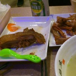 上次去赵小姐家看到了这家,于是这回来尝尝。环境很亲民的感觉,有点台湾夜市的样子。冻顶茶鹅32元,一只鹅腿切开,味道不错。白饭3元,不便宜。地瓜叶9元,上面有点肉末,味道不错。姜丝鹅肠20元,配上蘸料吃的,比较脆。鹅肝22元,有点硬,没有想象中的嫩。熏鹅掌18元,不够香,火候差点。鹅肉汤面13元,三块鹅肉,还有些豆芽和肉末。两个人117元,比赵小姐家便宜一半。查看更多
