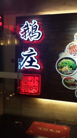 这个位置可能不太好,三家还可以的餐厅竟都人气不是很旺,包括赵小姐不等位。大门口还有人搭讪,问你想不想去它家吃。这家在靠近门口的位置,可以一目了然。门面一般,店面呈长方形,布置得较有台湾特色。拼花磁砖地板,简洁的仿大理石桌面的木桌和木椅。一面墙上都是台湾夜市的风情画,上面吊着一排写着“鹅庄”字样的老式吊灯。最里面则是挂满着木牌子菜名的隔断。环境显得较为整洁,虽然座位有点挤。鹅庄少不了鹅,也有古早味台湾小吃和夜市小吃。价格是亮点,在新天地这种地方算是较为实惠的。一般的也就十来块钱。门口还有外卖的特色台湾小吃,是真空包装的。上菜挺快的,中午去吃翻台率挺高。冻顶茶鹅:主要是鹅腿和小部分鹅胸肉,配一点泡菜。色泽较深,闪着亮光。鹅皮很滑很弹很嫩,汁水很足,肥而不腻。鹅肉很紧实,很鲜嫩,软而不烂,一点也没有什么腥味。顾名思义应该是冻顶茶腌制的,可是我为什么吃出了类似叉烧的咸甜味呢?茶味倒不明显。泡菜可以解腻,好想多加一点。卤肉饭:量不大,卤肉不多。米饭很好,颗粒很有精神,软而糯,较为香。卤肉的味道很香,很浓的肉酱香味,不过瘦肉有点干。总体感觉不错,性价比很高。查看更多