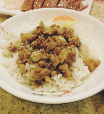 小伙伴强烈推荐的一家店,平时都没有时间过来,正好路过想到朋友提过好几次,就进来尝尝。茶鹅是每桌必点的,很大的一块鹅肉,应该是腿上的吧,肉质很嫩,稍微有点腥味。香肠蛮不错的,烤的火候刚刚好,配着蒜吃不会腻。三杯鸡是挺正宗的味道,就是分量稍微小了点。卤肉饭一般吧,上边都是瘦肉,我觉得卤肉饭放一些肥肉会更好吃一些,米饭本事还是不错的,很有嚼劲。