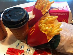 午饭想不到吃什么的时候,我就会选择麦当劳,环境还不错,比较干净,速度很快的。中午的套餐很合算的,经常吃,汉堡和薯条和一杯饮料,汉堡很大一个,很管饱,薯条热的时候,味道很香。