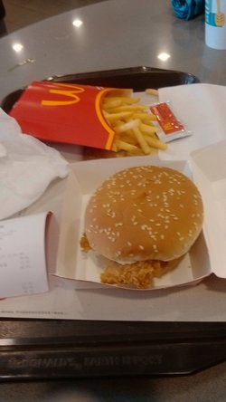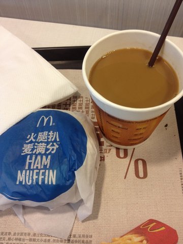 早上在这里吃的,点了一个火腿扒麦满分套餐,一个火腿扒汉堡,一杯咖啡。汉堡里面没有蔬菜,问服务员,说是最近都没有生菜了,要等他家的生菜长出来还会有哈哈。没有生菜的汉堡里面只有一片肉好奇怪。服务员送了我一张早餐免费豆浆的券弥补了我心灵的创伤哈哈。咖啡加了奶和半糖以后还得非常的苦,不知道一点糖不加的人都是怎么喝进去的。