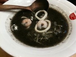 看了电视上的介绍去的,店里的环境不错,很整洁的感觉。点了墨鱼汁面,墨鱼圈、鲜虾、以及面条融入在墨鱼汁里,海鲜的味道很浓郁,很鲜,不是吃上去放了味精的感觉,好好吃。肥牛豆腐锅,肥牛蛮嫩的,量也不少,豆腐也很鲜嫩,蛮好吃的。总体来说,还是亦实惠的,口味也好。…查看更多