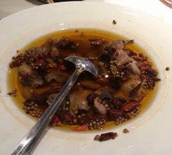 麻辣诱惑家的菜量不是很大,但是味道挺好吃的,毛血旺啊,蟹黄豆腐啊,干锅千叶豆腐,水煮鱼才,馋嘴蛙等等都很好吃滴说,小米椒爱上小公鸡里面的泡椒味道是比较的浓郁的,鸡肉挺嫩的很入味但是很辣也查看更多