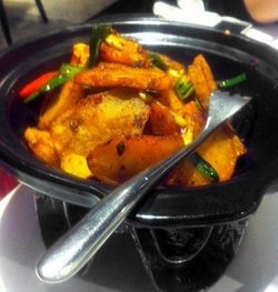 这家店就在大钟寺太阳园小区西门旁,一直都挺喜欢这里的环境的,连锁点,布置的特别神秘,灯光有点暗,店里有很浓的麻辣的香味。服务也特细致。干锅土豆片别看是普通的菜,但味道很不错,土豆切的比较厚,是用麻辣油炸熟的,边上特别焦,26元一份,也不是很贵。下面还有个酒精灯,不过吃到最后,锅底一层油,这个菜挺下饭的。价格也适中,2人消费130元不到。查看更多