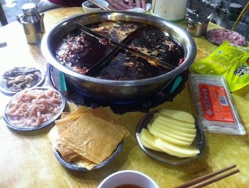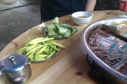 名气非常非常大的黄姐,终于去了。他们的位置真心不太好找,我一直以为只是在灯饰广场里面点点,结果是非常非常的里面,快要靠近滨江路了。没有车的童鞋,可以选择乘坐迷你巴士要到黄泥村,有车的童鞋可以开车下去,停在靠近黄姐这边的位置就可以了!他们这边应该是以前很老式的居民区,在一楼开了一家火锅。我深深的觉得来这边吃饭的人都是觉得价格很便宜。他们家的名气很大,很多人都是开车来的,而且大中午的都坐满了人。我震惊了,出来的时候还看到有人直接坐到车上点菜!他们家的味道真心不咋地不咋地,我只能说不难吃。没有很浓郁的火锅香味,也感受不到老火锅的牛油味,真心觉得就是一般的味道,只是稍微有点辣,但是那种辣味就是感觉是放了碱的,吃起很辣嘴巴周围。菜品价格虽然很便宜,但是分量也不多,那种很原始的以前的铁盘子装的菜。我们三个人吃了131,而且荤菜还是要了很多,所以真心便宜啊!比较推荐嫩肉片,发鱿鱼,相当的不错。据说他们家的牛肝也不多,但是我不吃牛肝所以没有尝试,大家可以试试哦!而且我发现广味香肠煮火锅还是很好吃的,哈哈哈!吃了两份广味香肠,赞啊!店家服务感觉不咋地,最无语的是一来就把菜全部倒了,还没来得及拍照,郁闷死我了。而且没有的菜还不提醒我们,只是给我们说菜上齐了,当我们想起有个菜没上,他们才说这个菜没有,哎!这服务,真让人失望!总体下来对我毫无吸引感觉,除了价格便宜,这个应该是唯一的亮点吧!他们的环境不好,味道不难吃,菜品一般般,服务将就。不推荐!…查看更多