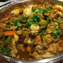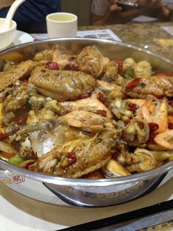 中午同事聚餐,团购了某网站的团购券,然后点了一份含有很多主料的锅,里面有鸡翅,虾,牛蛙,配菜我们选了莴笋,白菜,菌菇,一大锅咕嘟咕嘟的,热热辣辣,吃的爽死了。虽然结账人均有点超标,但是吃的很开心。查看更多