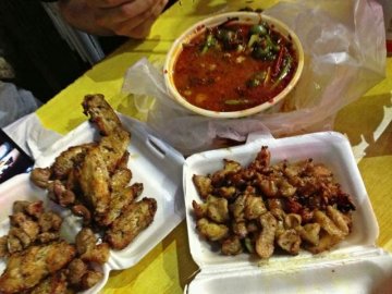 上海有名的黑暗料理啊。烧烤特别出名。一到晚上,摊头都摆出来了。老板很热情,一边忙着弄烧烤。一边热情地招呼着客人。住在附近的居民肯定怨声载道吧。有次晚上经过去吃了点烧烤,就当是夜宵买了好多鸡翅膀,味道还不错。味道很地道。想到很多年前在吴江路吃烧烤的味道。鸡胗什么的也很好吃晚上在路边吃大排档也挺有意思的不过肠胃不好的朋友别去轻易尝试哦查看更多