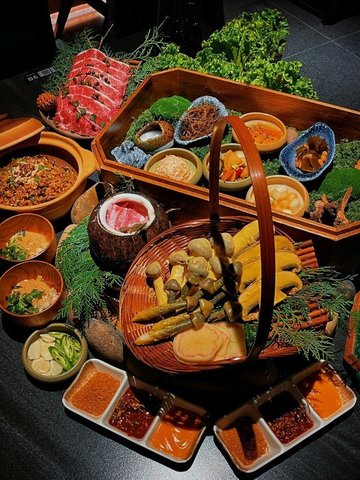 琼·原椰乳浸胸肋肉 / 澳洲M9雪花和牛 / 云·木姜子和牛三筋 / 湘·樟树港辣椒牛肋条 / 黄油山菌拼盘 / 云·熟成香茅黄油鸡