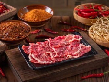 贵州特色夺夺粉 / 耙鸡爪 / 嫩滑牛肉 / 雪花牛肉 / 现切吊龙 / 红酸汤锅底