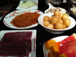 锅可以选四种口味,比较有特色,芝士包很赞,里面的芝士很浓郁,涮好了很美味,一份的量不大,所以不会觉得腻人;虾滑的特色是勺子可以挂在锅边煮的,比较容易捞,口味还是蛮鲜美的;牛肉很嫩很新鲜,羊肉稍微逊色一点不过也不错。查看更多