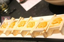 鼎鼎有鸣,名字取的真是不错啊。的确味道很好,我也是看到很多吃货朋友都来过这家店,所以趁他们优惠的时候,也就来了。他们2月周一到周五午市198/位本来相约好8个伙伴一起去的,可是在去的前一天,纷纷的放了我的鸽子,不过不要紧,还有一个,所以我们依然探索了这美食之旅啦~鼎鼎有鸣不是很好找,所以到了那我找了半天才找到门口。因为门口没有人,我还以为没开门了。还好我自己推了一下门进去,一看,里面的生意真不错,基本都坐满了。朋友已经在里面等我。报了预约的名字后,就坐上了位置。他们午市是从11点半到2点半,但1点半是最后点餐时间。所以如果1点来就不格算了。2点半后只接待单点的客人,自助餐就不再接待了。不知道是不是因为过年,所以人手不够,上菜速度的确是非常的慢。刺身很新鲜。其实吃日料,如果东西新鲜的话,真的也没什么差。不过他们家的烤物味道很不错。银鳕鱼我觉得比初花的好吃太多了。嫩,香,雪白的肉质,还有点微甜的口感,烤的恰到好处。芝士焗扇贝 ★★★★☆本身就爱吃扇贝,什么样的做法都能接受,就是不能接受生的,这里还有生的哦,但是不敢尝试。芝士味道很浓,扇贝也非常可口,真是齿颊留香雪蟹 ★★★★也很不错。因为蟹总归有一点腥味,他很好的用芝士去掩盖住他了。所以加上芝士的雪蟹脚还是非常的美味的。香煎鹅肝 ★★★★★最让我惊讶的就是鹅肝了,我只是看着大家都推荐,就顺便点了一下,真没想到,真的如此之美味。他先将鹅肝一块块小小的切好,拿起一块,塞入嘴里时,鲜嫩,以及入口即化的口感。简直无法形容。让人真是回味无穷。无法忘记那个味道。虽然有点油腻,但吃了真的无法忘记,所以点了两次。吃一次就觉得好吃一次。一定要点啊。还有很多烤物很好吃,可是来不及点。实在美味的时间太短暂了。不过这次真的是不虚此行,为了这些铁板美味,我也还要再来。不过下次想坐在铁板烧的位置上,可以看师傅亲自弄,一定也是一种特别美味的享受呐~查看更多
