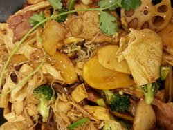 这家麻辣香锅在这里开了很多年了。周末来吃,人还挺多的。他家的麻辣香锅味道还不错,我们也就是吃中辣的,还得搭配酸梅汤喝。晚上一般点的都是素菜居多,荤菜也就是鱼豆腐和丸子那些。鱼豆腐很好吃,很劲道,海鲜味挺浓的,就是不太入味。藕片挺脆的,就米饭吃很香,豆皮有点咸,也有点烂了。他家的海带也不错,不是特别硬厚那种,挺薄的。2人消费120元,吃的不错。