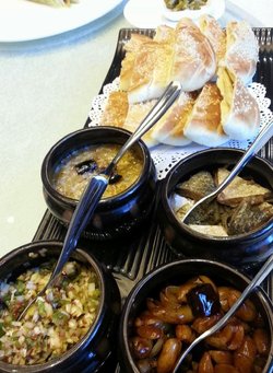 武大郎炊饼偏甜、偏硬,而且给切成两半儿了,不方便填充“四大缸”。四大缸分别是咸鱼、虾酱蒸鸡蛋羹、老虎菜、咸菜,味道还可以吧。酒香红烧肉器皿、卖相都不错,但是肉肉太甜太腻,块头太大,俺这么生猛的肉食动物只吃了一块就顶住了!3个人只吃掉3块儿,剩了大半盆,连打包的欲望都没有。最赞的是咸鱼饼子:腌制的大黄鱼咸度、炸的火候恰到好处,小饼子是玉米面的,里边加了一些绿色的菜叶子,配咸鱼吃正合适。清炒鸡毛菜用料、味道、火候都不错。查看更多