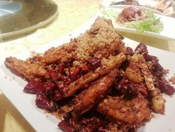 龙腾轩学清路5号(美廉美对面).以川菜为特色的一家餐厅,那个避风塘香辣虾还是很好吃的呢,大虾的个头不错呢,收拾的也很干净,取出了虾线,而且外皮非常的酥脆,里面的虾肉禁实很好吃哦,味道香辣给力,不错哦。…查看更多