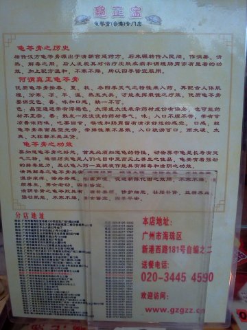 这里店面不大,里面却搞得十分干净整洁,店家的服务态度也很好,很热情周到,让进来这店消费的每一位顾客都有一种宾至如归的感觉。这里的龟苓膏制作质素可谓十分出色,给人的感觉很专业,很正宗。虽说不算很大碗,但是用料十足,而且也稍微有点苦,如果受不了这味道的朋友可以加点蜜糖上去吃,也是别具一番风味的。吃完以后感觉十分清爽舒喉,真是妙不可言啊!…查看更多