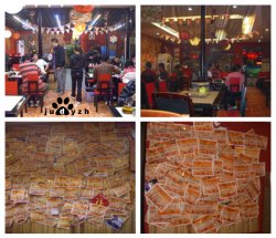 店内墙上满满的奖状,说起奖状,就不得不说他家的镇店之宝了。来自南美洲的‘地狱之火’。一小片能让七尺男儿落泪的辣椒。据说是种红指天椒。是南美当地人公认的最辣的辣椒。墨西哥杜伦鸟市每年都会举办一次吃‘地狱之火’的比赛哦。92年的时候,参加比赛的一位名叫甘牧斯的选手,当他把13个红指天椒送入口中吞掉,5分钟后,他的面孔很快地变色,并张口喷烟,鼻孔耳内也同时向外喷烟,接着脖、颈和双手也开始喷烟,似乎被烈焰包围了。观众们大惊狂叫,比赛的组织者立即准备急救车欲将甘牧斯送医院急救,可是已经晚了。这时甘牧斯已全身着火,那火特别明亮,有一股辛辣的气味。20分钟后,甘牧斯被烈火焚毁,衣服、鞋子、肌肉、骨骼等都化作了灰烬。一场吃“地狱之火”红辣椒比赛变成一幕惨痛的悲剧。嘿嘿~这个至今人们还不清楚究竟是什么原因导致甘牧斯全身燃烧哦。 大铁锅梭边鱼。梭边鱼呢,肉厚无刺,皮滑肉嫩,肥美味浓,营养价值极高,具有大鲜、大补的特点。吃了两块,么办法啊,两块还没下肚,已经没梭边鱼肉肉了。大家也都很爱吃这个呢。跟铁锅牛蛙一样,里面放了好多的小菜、豆芽、粘玉米、鱼丸、青笋、香菜之类的。 另外单点了包心鱼丸、娃娃菜、撒尿牛丸、魔芋丝。。。查看更多