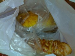 在松滨路下的3号线,正好有85度C的面包券20元面值的,兜了半天,也不知道买什么好。后来还是买了我最喜欢的椰奶面包,看上去就非常有食欲,好像是7块一个把,长方形的面包,里面是椰子丝,奶味特别的浓,而且面包本身很松软,还买了个爸爸喜欢吃的,是显得口味,也是7元一个,长长的,上面有火腿肉之类的。剩下的钱买了个几个牛角包,哈哈!忍不住就先吃掉了呢!查看更多