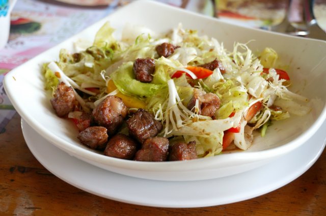 这家店的环境非常好,装修很雅致,地方也宽敞,座位非常舒服,是那种卡位的。消费在人均80左右吧,不算太贵,感觉还是不错的一家西餐厅的。店里面的服务也挺不错的,上菜很快,服务员也很有礼貌。我们点了一份吞拿鱼沙拉,这个味道还可以,吞拿鱼的分量还算挺足的,里面还配了番茄,BF挺喜欢吃的。还有海鲜南瓜汤,一向不太喜欢西餐的汤,这个算是还比较不错的,做的很鲜甜,南瓜汤很浓稠,味道也不错。主菜要的果木厚烧肋眼扒,煎的很不错,味道非常香嫩,分量也很足,非常大一块,男生应该也吃的饱。总的来说非常不错的一家西餐厅。查看更多