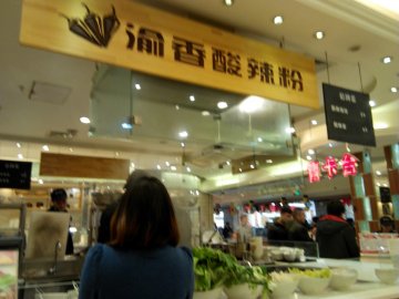 位置:海淀区成府路28号五道口购物中心B1楼(近五道口地铁站)是一个很方便的吃饭地方,有点像大食堂的感觉环境还不错,需要充值才换卡才能买饭吃的渝香酸辣粉,味道还挺不错的,份量挺多的一份,汤酸辣可口,里面还有少量的蔬菜
