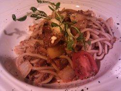 环境很好的一家西式餐厅,有个小二楼店里人不多,灯光很柔和,很幽静。店员服务很好,价格小贵。意面做的很精致,吃着劲道爽滑,肉酱放的挺多的,酸甜爽口,里面好多的肉末,吃着很弹牙。面上还点缀了圆葱和小番茄,最后撒上点奶酪粉,味道浓郁爽口。查看更多