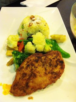 店面很小哇,里面倒时很安静,很适合点杯饮料就这么坐着。下面大概有6个座位,楼上大概有6-7个座位,很小的一家店倒也温馨浪漫。点了意大利面,很好吃,口味清淡,但是淡淡的飘着香气。偶尔的轻音乐很有情调。朋友点的鸡胸肉。站着蘸料味道很赞。鸡胸肉很嫩,一点也不腥。查看更多