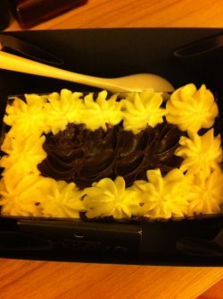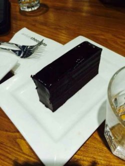 四五十块钱一块的蛋糕,包装得像一份礼物,黑色纸盒,香槟色丝带。味道不是很腻,入口绵软且微微有些颗粒感,挺醇的巧克力味,感觉不大也不厚,很适合作甜品。建议团购的时候下手会划算些,不过这么多巧克力吃下去很罪恶啊!查看更多