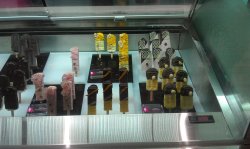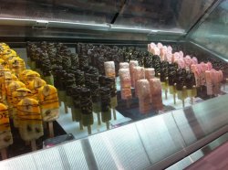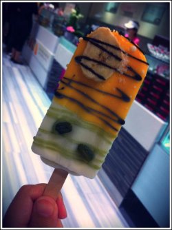 一走进越洋广场下面的食堂,就能被门口右手边的冰激凌橱窗所吸引.完全就像是假的一样,一根根漂亮可爱五颜六色的冰棒整齐的排列在里面,按照口味分的。每一根上面还有一些点缀,蝴蝶结之类的,我觉得光外形就已经吸引了很多女孩子,味道其实不是重点了!于是我们买了一根芒果的,正如外表一样很甜,硬硬的雪糕,不能多吃,小小的一根下去已经觉得很有负担了,而且多吃有点太甜太腻了,果然还是外貌更好些。价钱不便宜,20块左右一根。查看更多