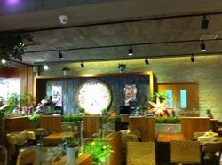 有一次和老爸去悠唐看电影,上午出去办事,下午看电影,因为路上坐车很顺,早到一个多小时,所以搜索手机了一下,在电影院附近有家咖啡店,就是这家咖啡陪你,这家店在悠唐广场里面的皇冠假日酒店,地铁2、6号线到朝阳门出去往东南位置走,在丰联广场后面也就是南面就是悠唐了,在皇冠假日酒店的2层。店内人很多,不算很安静,因为有说话的、打牌的等等,不过虽然炒,但是也还挺惬意的,因为店内挺大的,他家算是咖啡陪你里面挺大的店了,喜欢墙上和房间里面的任何装饰品,有亲切感啊。店员的态度也特别好,也特别热情。我们俩点了榛仁拿铁咖啡、提拉米苏蛋糕、冰淇淋华夫和蜂蜜果仁华夫。榛仁拿铁,为自己要的,老爸不想喝咖啡,就要了免费的柠檬水,咖啡不错,应该是手工的吧,挺香浓的,里面有榛仁的味道,挺醇厚的,上面还有桃心拉花。提拉米苏,是蛋糕,三角形状,一大块,很浓郁的味道,有层次感,味道很纯正,奶油甜甜但不腻,蛋糕也很松软。蜂蜜果仁华夫,华夫不大,上面有葡萄干和杏仁片,杏仁片香香脆脆的,葡萄干甜甜的,华夫上面抹了蜂蜜,甜甜的、软软的,上来时候还有点热乎呢,挺香的。冰淇淋华夫,同样比较小的华夫上面一个很大的冰淇淋球,冰淇淋球选了香芋口味的,还挺细腻的,冰冰凉的,很爽滑,下面温和的华夫,真的是冰火两重天啊。查看更多