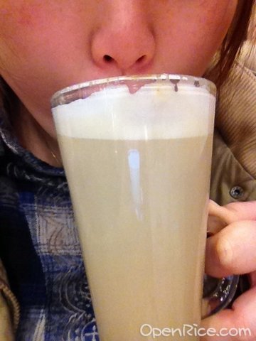 开在我格广场一楼大门口,如果天气好的时候我会选择坐在外面看看来往的行人喝喝他们家的拿铁,价格上感觉跟星巴克差不多不算很便宜,不过人流上就稍微逊色一点好在比较清静,喜欢他们家的拿铁,奶香味很足,隐约感觉到一丝咖啡的香醇,对于不怎么爱喝咖啡的我来说拿铁是最好的选择。