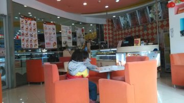 甜甜圈,里面的装修特别温馨,靠窗的位置是我特别喜欢的。橘黄色的沙发,有杂志可以看。她家有饭吃,各种套餐饭,卖相很好靠,味道也不错,相对价格也跪着。不过她家的甜甜杯,也就是冰淇淋,特别好吃,感觉比KFC的味道要好吃一些。甜甜圈都很可爱,各种造型,看上去还蛮有食欲的。甜甜圈比较松软,味道细腻,很香甜做下午茶点不错。怕肥胖的不宜多吃。