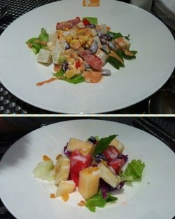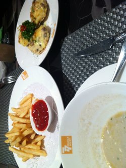 七夕前些天,妹妹用77元秒杀到了这个西餐厅263元七夕套餐:法式香草黄油焗蜗牛or嫩煎白金枪鱼、什锦水果沙拉、酸奶培根土豆沙拉、奶油南瓜汤、培根玉米浓汤、碳烤澳洲西冷牛排、碳烤美国猪大排、蓝莓芝士蛋糕、品牌冰淇林配鲜果。 就这套餐来看,77元还划算,果断避开了七夕的高峰期,选了节后的工作日去。我这边提前半小时下了个班,妹妹早早就到了,验证完,我过去那会已经上好菜了,据说验证环节还蛮顺利。 【嫩煎金枪鱼】金枪鱼还算嫩,味道有些淡,搭配的面干的要死,且一点味道都没,无法下咽,有些浪费粮食的感觉。 【奶油南瓜汤】南瓜汤上的确是淋了一圈的奶油,卖相看起来还凑合,喝起来实在没法形容,只能简单的概括为寡淡无味,很稀薄,南瓜味没喝出来。 【碳烤美国猪大排】猪排配番茄酱,第一次吃到,味道稍许有些怪,生熟程度倒是好的。 【蓝莓芝士蛋糕】这应该是我吃的套餐里面最满意的一项了,口感还算好 【品牌冰淇林配鲜果】超市里面卖的雀巢冰淇淋的口感,算不上品牌,有些掉法国餐厅的价的感觉,搭配的鲜果,无非是冰淇淋球下面埋了冰冻过的西瓜果肉粒,而且还不是很甜的那种。 一顿餐下来,吃的谈不上饱,只能说一分钱一分货,只能值77,如果是花263吃这个套餐的话,我多半会胀气消化不良。建议餐厅可以换厨子了,别辜负了这么好的装修,给人家情侣创造良好的约会环境同时,也善待一下他们的胃呗。查看更多
