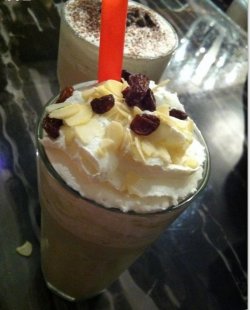 不温不火的开了快2年了吧。这家店。因为评价一直一般,所以小亚也就不是特别想去尝试。只是说这天想找地方坐坐。万达广场似乎就这里比较恰当了。那么就这里吧。嘿嘿。。。实话说,这家店的亮点不是环境也不是服务更不是菜品。而是入门口的那盏水晶吊灯。 参差的不齐的水晶珠子,在灯光下晶莹剔透,熠熠夺目。因为是休息所以就点了2杯饮品【抹茶葡提】22元光看名字小亚觉得多有兴趣的。但是上的成品和想想中的不一样,和图片也有点差距。就是一杯抹茶口味的沙冰上面加了奶油,再在上面撒了葡萄干和杏仁片。沙冰不够细腻。抹茶味道不够醇正。奶油有些劣质。橘红色的吸管很惹眼很俗气【提拉米苏沙冰】28元名字的吸引力又远远超过实物的一款饮品。味道平淡无奇。 提拉米苏只是取其形似而已。味道基本上尝不出是提拉米苏哈。同样。深蓝色的吸管很惹眼很俗气【熔岩巧克力风灯配曲奇】价格倒是不贵。味道还可以。 造型也不错。但是比起莎宾娜的熔岩巧克力还是有一定差距哟。这款甜点之前多火的。各大西餐厅纷纷推出。喜欢这家的那个小卡片一样的小片片。没仔细琢磨是什么材质。但是看着多有范儿的。 嘿嘿其实环境真的很普通。家具也很普通。沙发坐着也不舒适。但是进门口的那盏水晶灯真的很耀眼。。。。。。。。。。。。。。。。。。很喜欢。。。。。。。。。。。。。。。。。。。。。。。。。。。。。。查看更多