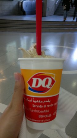 DQ冰雪皇后 Dairy Queen(城隍庙店)和哈根达斯(城隍庙店)是在一个区域里的,两者距离大概几十步远。DQ的价格比哈根达斯稍微便宜一点,当然档次也比哈根达斯低了那么一点。城隍庙的这家DQ店我偶尔会去光顾一下,喜欢他家的暴风雪系列。店员制作好这个暴风雪后,会把装满冰激凌的纸杯快速的180度向下倒一下,以表示这杯暴风雪“倒杯不洒”。至于为什么店员都要做这个动作,还真是不太明白。后来百度了下,才知道每杯暴风雪都是经过暴风机均匀搅拌加工,使得冰激凌紧贴杯壁,是大气压把冰激凌托住了,所以才会“倒杯不洒”。查看更多