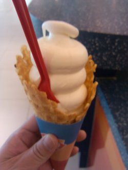之前吃的都是DQ家的暴风雪 感觉好好吃 第一次吃他家的冰激凌蛋糕 。。。额 这么说呢 希望越大失望越大吧 不好吃好硬的呀 等到融化了 又好甜 甜的嗓子眼儿发咸 太腻了 8寸的 6个人吃 剩了一半 好浪费呀